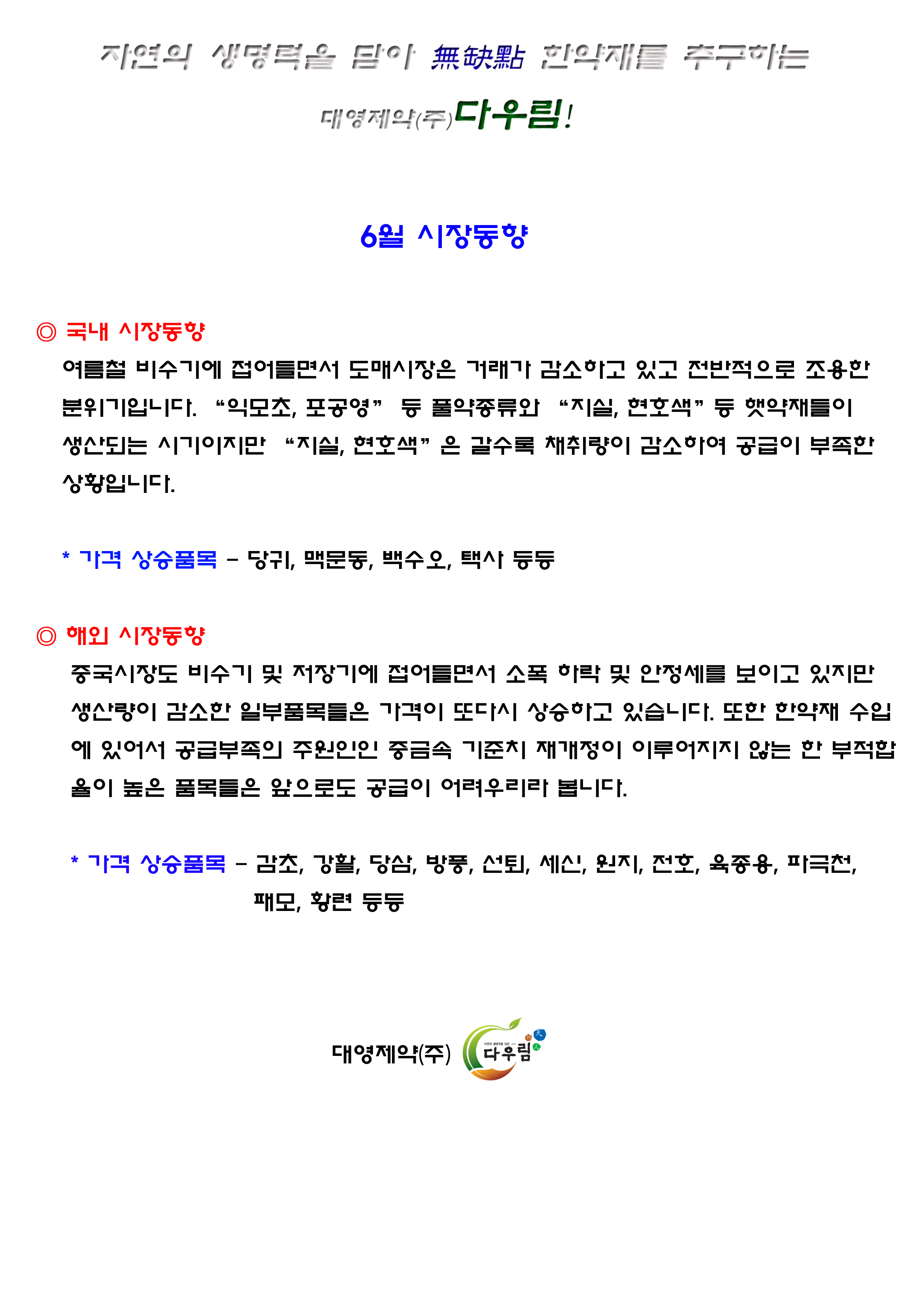 | 다음글 | [판매]우수한약재유통 / 6월1일부터 판매 | ||