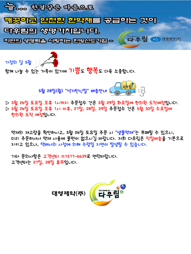 | 이전글 | 6월 6일 현충일 배송관련 안내 | ||