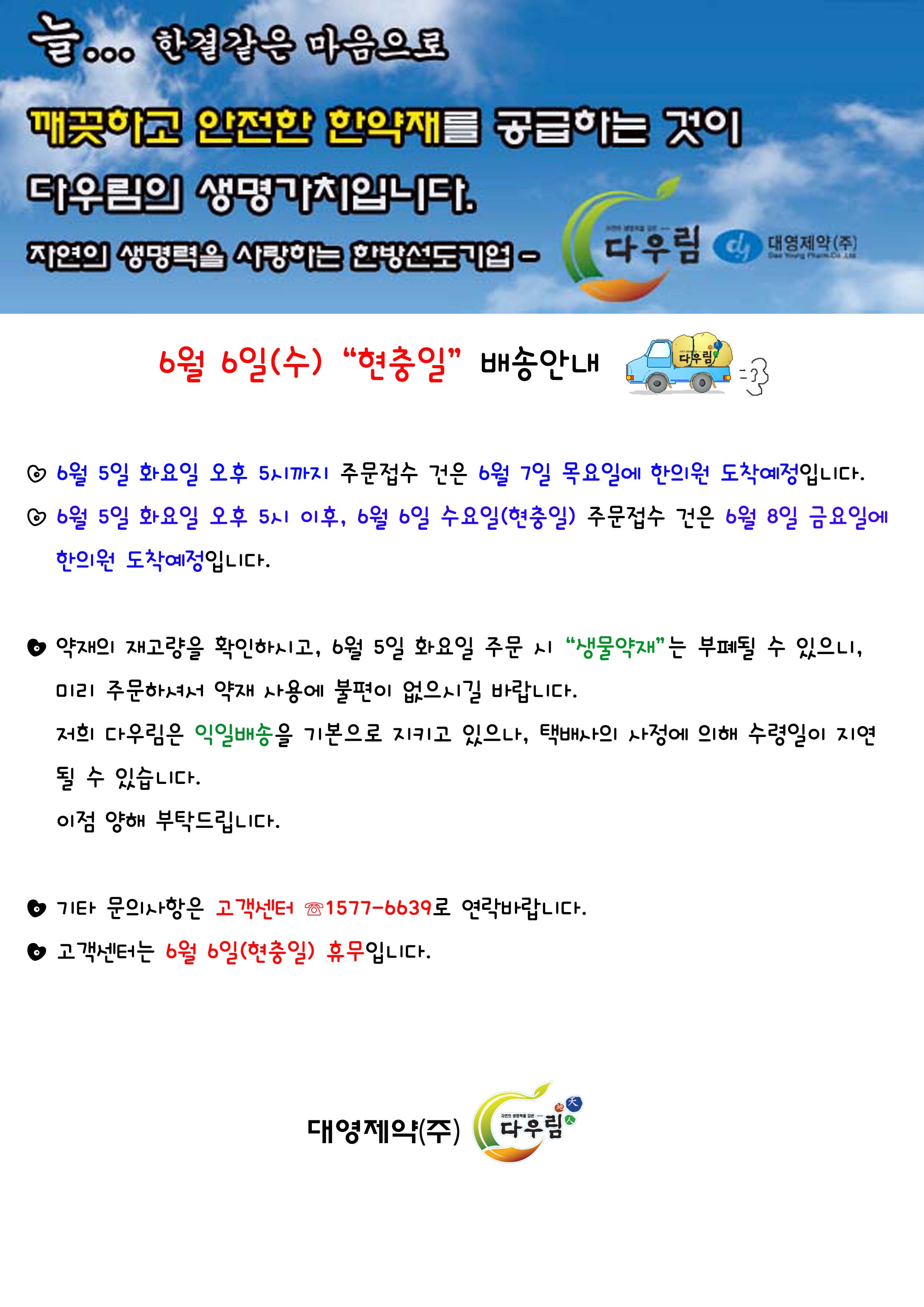 | 다음글 | 5월 28일 석가탄신일 배송관련 안내 | ||