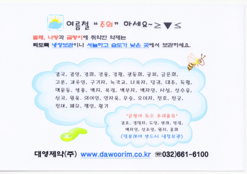 여름철 한약재 관리시 주의해야 할 품목입니다. |