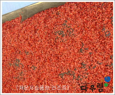 ○ 저온순환건조방식 (에어하우스 건조) 빠른 시간내에 건조하는 기존의 고온(60 ~ 80℃) 열풍 건조 방식과 달리 온도를 25 ~ 35℃로 유지하고 밀폐된 공간속에 강한 바람을 일으키며 공기를 순환하고 강력한 냉각장치와 제습장치로 습기를 제거하여 건조하는 방식임. 이 과정을 50 ~ 60% 거친 후 에어하우스에서 마무리 건조를 하는 방식으로 자연건조와 비슷함. (에어하우스건조 - 두꺼운 이중 비닐속에 강한 바람을 불어넣어 햇빛과 바람으로 건조하는 방식)