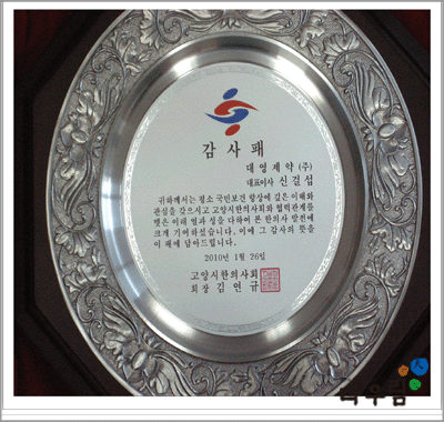 | 영등포구 한의사회 제56회 정기총회 2010년1월21일에 개최되었습니다. 대영제약"다우 림"이 최우수 업체로 선정되어 표창패를 받았으며, 고양시 한의사회 제29회 정기총회(2010 년1월26일)에서 "감사패"를 수여받았습니다. 대영제약은 앞으로 더욱 노력하여 한방산업 발 전에 기여 할 수 있도록 최선을 다하겠습니다. . ![]() 영등포구한의사회 총회 공로패 시상식 ![]() 최우수 업체 시상 및 표창패 ![]() 고양시한의사회 총회 고양시 한의사회 장학금 시상식 감사패시상 및 감사패 |