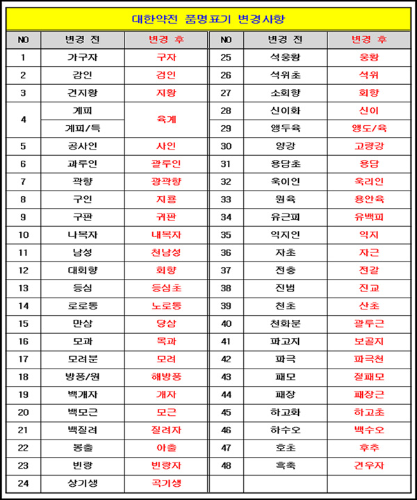 『 대한약전 품명표기 변경사항 안내입니다.』 |
