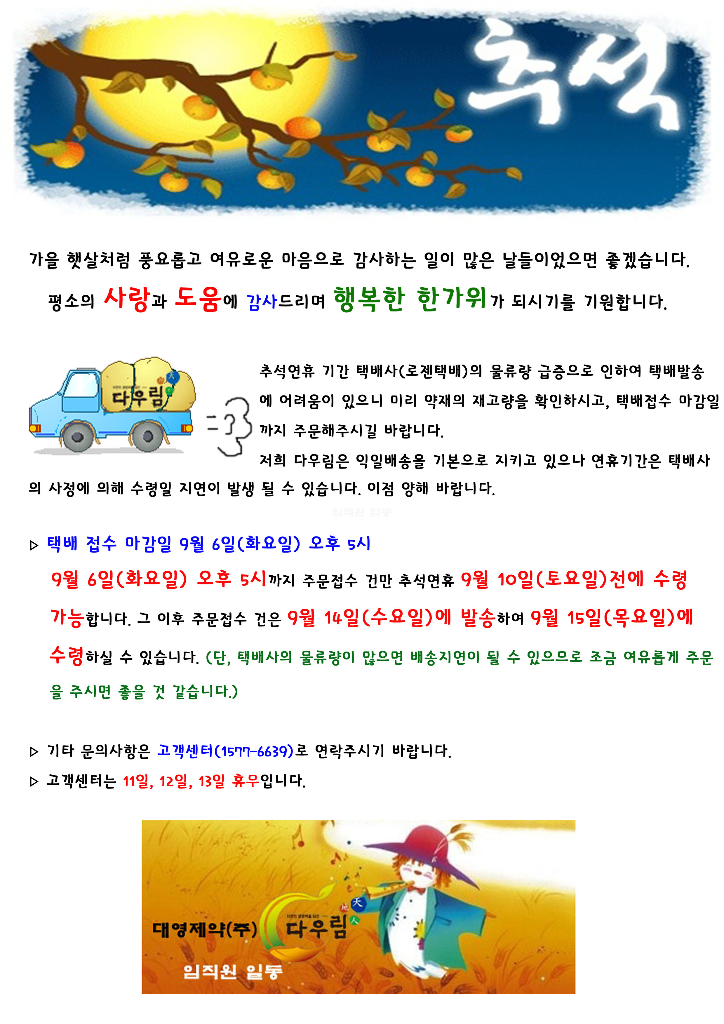 "추석연휴 배송안내"